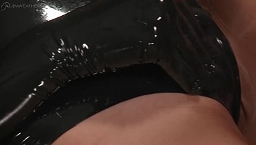 Ashley usually just likes to get tied up and forced to orgasm. She’s a gal after my own heart. Ashley is new to latex and was completely entranced by how slippery it was. She glides her latex hands over the shorts she’s wearing. She can feel not only the slick latex but the pantyhose underneath. She unzips one of her boots and uses it to stimulate her clit. The 6 inch heel of her ankle boot also comes in handy right before she grabs the vibrator. Still with only one shoe on she stretches out her long legs so she can point her toes and cum. Just as she begins to grab her boobs her eyes roll back and she lets out this orgasm from deep within her. Sweet Ashley has 2 very nice orgasms if i must say so. She purrs just like a kitten.