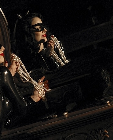 It's sort of funny. I don't think Dita expected to be in a catsuit when she came over. She has not been doing a lot of fetish stuff recently. Mostly a lot of fashion, corsets and lingerie modeling... Regardless - I think this just worked on her... OH MY. I think the one part of O-girl that a lot of people wanted to see was O-girl getting "un-masked". That would mean that she would have to be masked for the rest of the production however, and I think it tends to hide the eyes, so I decided against a mask. Well, I guess this is my "bones" I'm going to throw to those folks... I understand the sexiness... :)