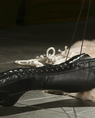 Mary Jane is having a great day. Not only is she tied a very tight semi reverse box tie, but she has been allowed to wear her favorite crotch high leather ballet boots. She has also donned a body stocking, black leather gloves and a tight black leather corset. Mary Jane rolls around helplessly, posing her unbound booted legs in a variety of positions. Eventually, her legs are tied and a ball gag is added to make sure that she doesn’t complain too much. This only just makes her struggles that much more sexy.