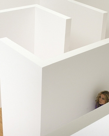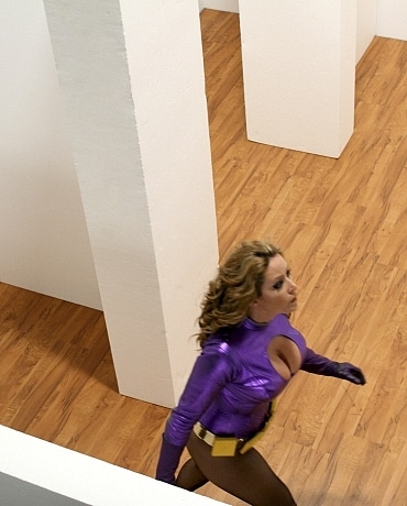 O-girl (Christina Carter) awakes up to find herself in a small white walled room. Lady Felina (Diana Knight) explains that she is trapped in her maze. A panel in the wall slides opens, and Lady Felina dares O-girl to come find her. O-girl enters the maze and quickly finds the complex series of walls and passages completely disorienting. Eventually she reaches the center of the maze, which Lady Felina explains is inescapable. O-girl tries one way, and then another, only to find herself back in the center of the maze. Over and over she tries, but ends up where she started. Lady Felina enjoys watching O-girl’s desperation rise. Finally Lady Felina decides to move forward with her plan and opens a special path which O-girl runs though. Unfortunately, the path ends up in room with spikes on opposite walls, which slowly begin to slide inward. O-girl soon sees that she will be crushed between the two walls. Is there any possibility of escape? Photo Set: wmbc20070120-1