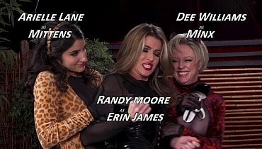 In Episode 4 of “The Perils of Batgirl II”: Batgirl (Angela Sommers), having been captured at Catwoman’s lair, is tied in tight rope bondage. Catwoman has her kittens (Dee Williams and Arielle Lane), take off her boots (because she is going to add them to her collection of famous footwear), and then proceeds to suck on Batgirl’s stocking feet. Then she has her kittens roll her over, and she brings Batgirl to orgasm with a vibrator. She then removes Batgirl’s gag, kisses her, and laments that she must get rid of her. She asks her kittens where they put the shapely Erin James, and they reply that they put her in “the Box”. Catwoman likes that idea, and decides that Batgirl should join her.